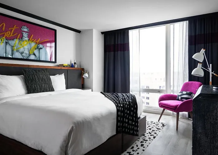 Located in the heart of D.C., Yours Truly D.C. offers a unique experience with two on-site restaurants, both serving creative American and vegetarian cuisine. Guests are just a short walk from selections like the White House and Georgetown. The contemporary rooms are well-furnished with flat-screen TVs and high-speed Wi-Fi. The hotel offers a modern fitness center to maintain your exercise routine while indulging in hospitality. With a blend of style and comfort, it's ideal for both leisure and business guests.
